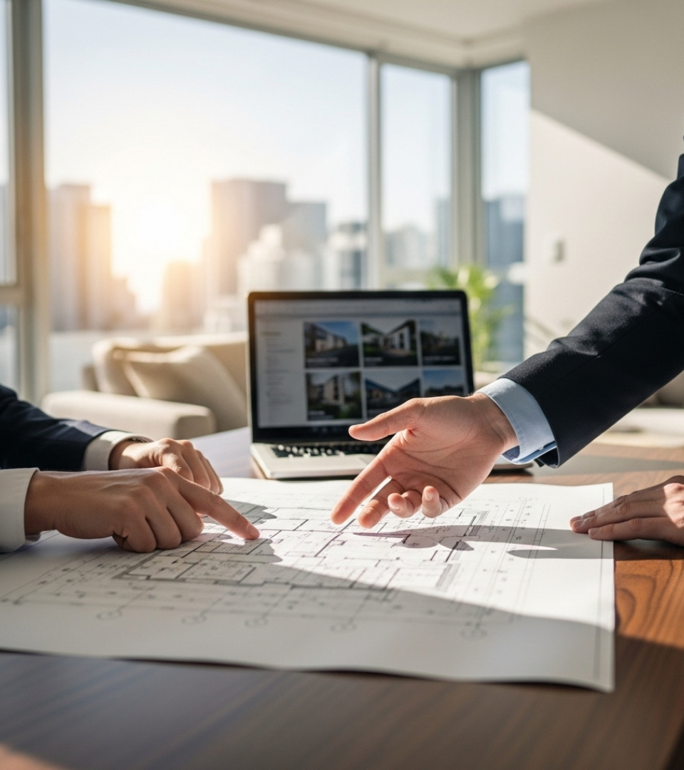 お客様の目標とリスク許容度に基づき、最適な不動産投資戦略をオーダーメイドで設計。市場分析から物件選定の基準設定まで、トータルでサポートします。